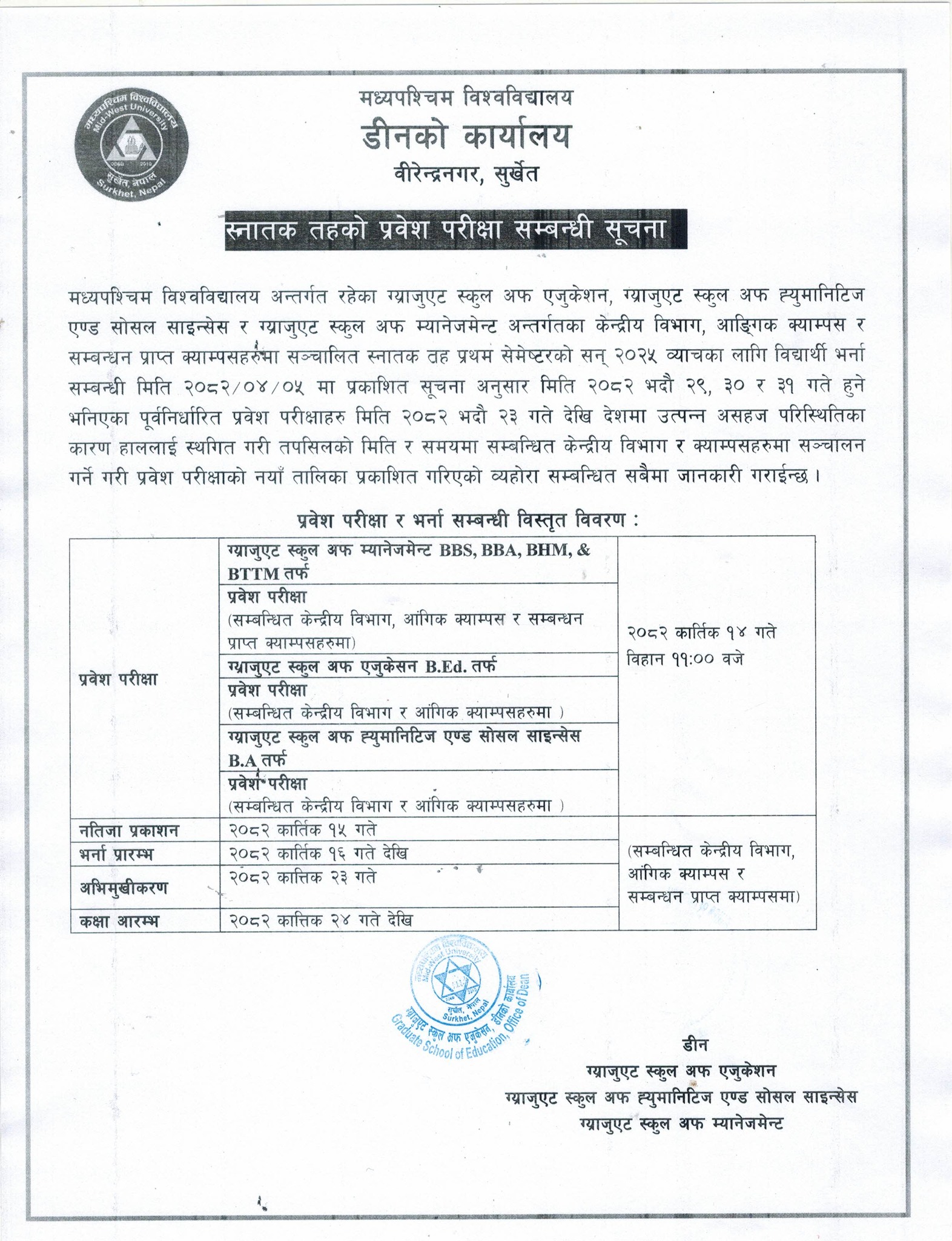 Mid-West UniversityDean's Office, Graduate School of EducationSurkhet, Nepal